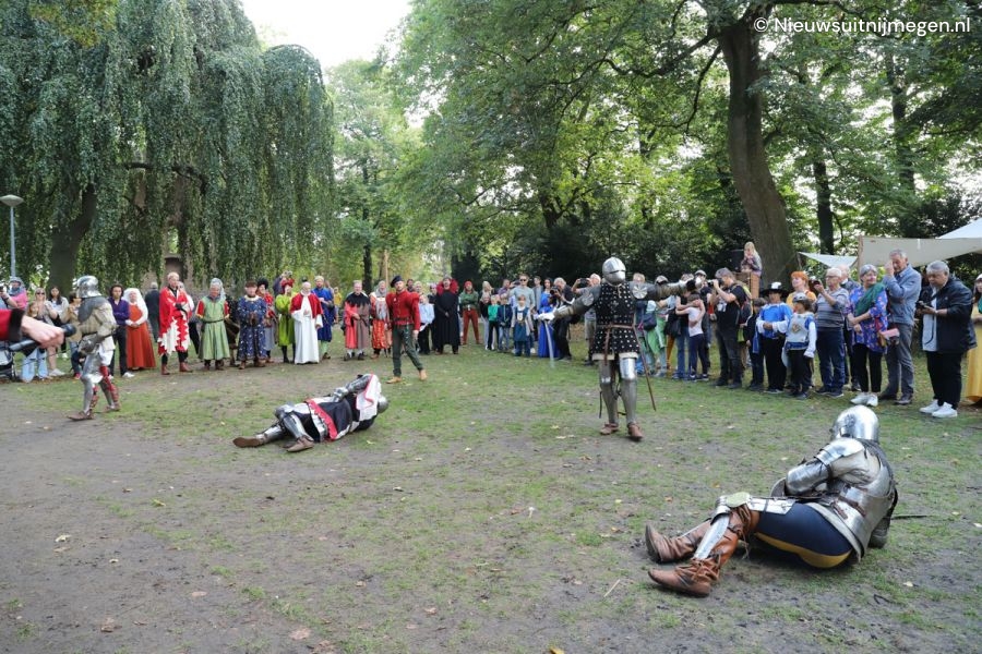 Een aantal miniaturen uit het getijdenboek Très Riches Heures du Duc de Berry werd dit weekend tot leven gewekt in een spannend verhaal dat zich voltrok in het Valkhofpark. Het fictieve verhaal ging over de tragische dood van de vroeg gestorven broers Paul, Johan en Herman van Lymborch. Zijn zij wel gestorven aan de pest of was er meer aan de hand? Zus Greta van Lymborch nam de bezoeker mee in dit mysterie dat telkens begon in de Barbarossaruïne en eindigde op het toernooiveld in het park.