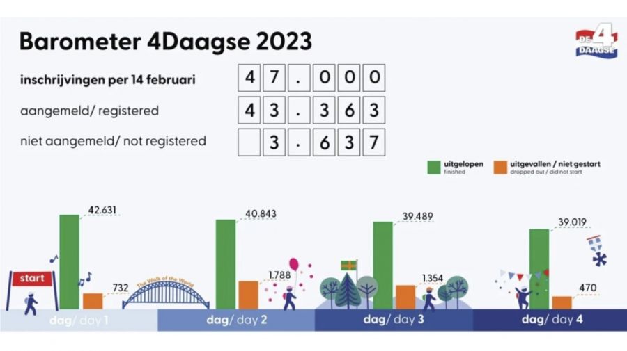 Voor iedereen die gek is op feiten en cijfers: de Barometer van de Vierdaagse 2023!