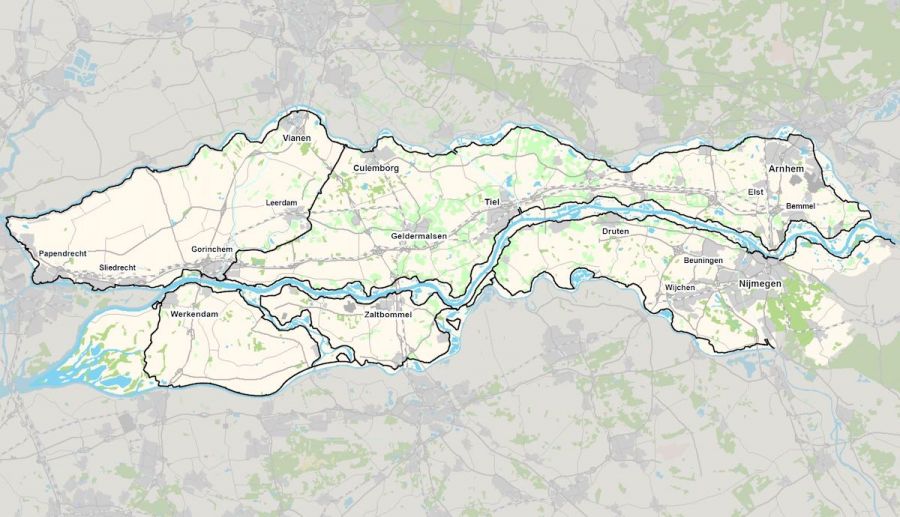 Een overzicht van de rivierdijken in beheer van Waterschap Rivierenland.