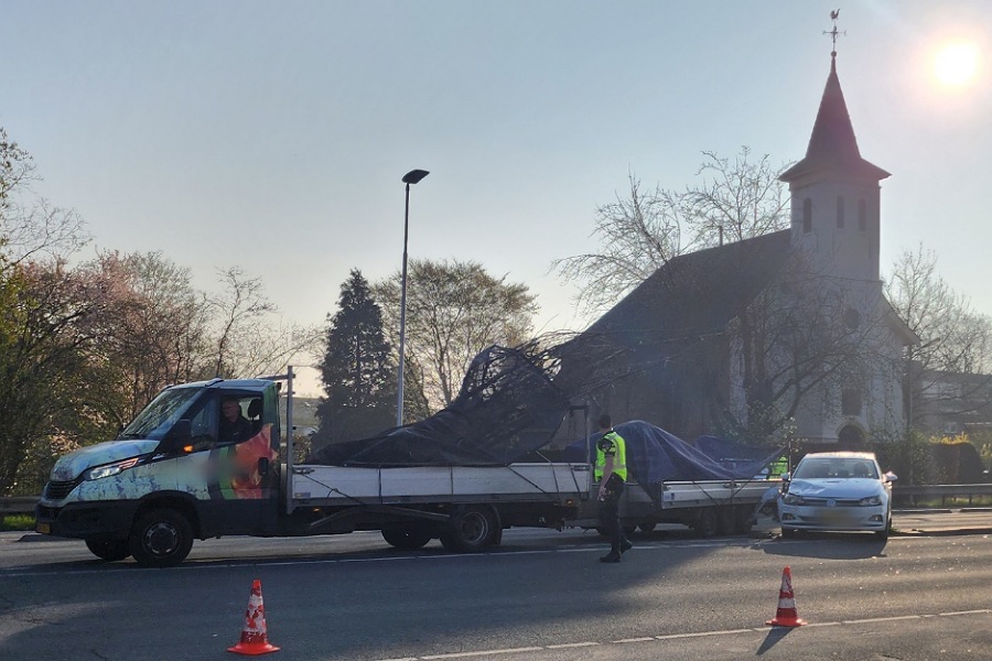 Een automobiliste botste tegen de zijkant van een open bakwagen met aanhanger. Vermoedelijk wilde de bestuurder van de bakwagen van rijstrook wisselen. De bakwagen en aanhanger kwamen dwars op de weg te staan en blokkerde meerdere rijstroken.
