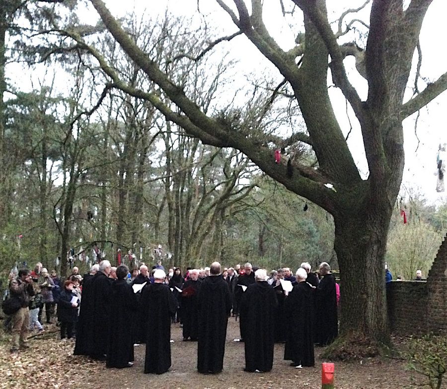 07h! Koortsboom en St. Walrick. Paaszaterdag 19-04-2025. Walrickerweg. Overasselt. Bijeenkomst met de Schola Cantorum Karolus Magnus. Bij het ochtendgloren.