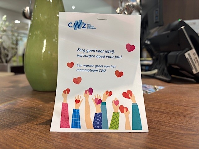 Het mammateam van CWZ is een multidisciplinair team van oncologisch chirurgen, radiologen, laboranten, verpleegkundigen, verpleegkundig specialisten, pathologen en oncologen. Zij zetten zich dagelijks in om borstkanker zo vroeg mogelijk op te sporen en patiënten tijdens het hele zorgtraject te begeleiden. Van de eerste diagnose tot en met de behandeling en nazorg, patiënten kunnen rekenen op persoonlijke en deskundige begeleiding. ‘We willen niet alleen de beste zorg bieden, maar ook bewustwording vergroten. Dus ga bij twijfel of klachten altijd snel naar de huisarts of het ziekenhuis, vroegtijdig ingrijpen helpt echt’, aldus Dorothé Jans-vd Heuvel, verpleegkundig specialist.