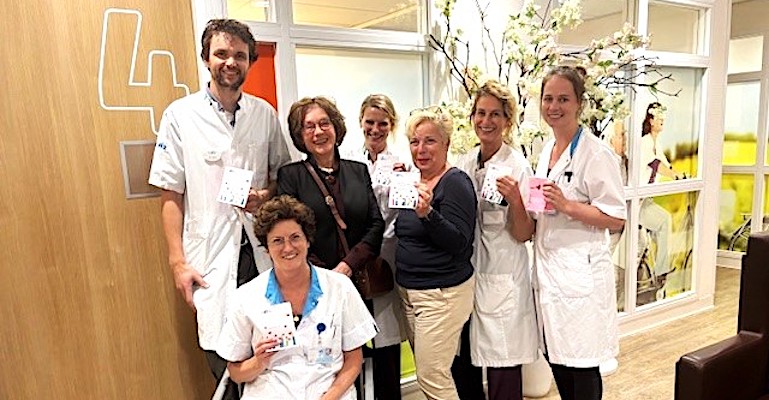 Iedereen die in oktober in CWZ een borstonderzoek, controle of behandeling ondergaat, krijgt een kleine attentie als blijk van onze steun en betrokkenheid. Mevrouw Veronica Warnaar kreeg afgelopen week als een van de eersten het presentje uitgereikt: ‘De aandacht die patiënten in CWZ van het mammateam krijgen is ongelooflijk, we gaan altijd een beetje blij naar huis’.