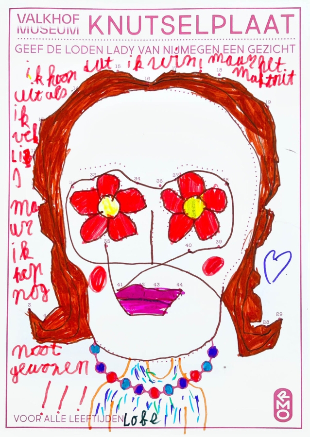 Afgelopen zomer deden ruim honderd mensen mee aan de knutselwedstrijd Geef de Loden Lady een gezicht. In zowel Valkhof Museum als in het Rijksmuseum van Oudheden (RMO) konden mensen bovendien knutselworkshops volgen. Dus wie het lastig vond, werd geholpen door de kunstenaars van Naaistreek.