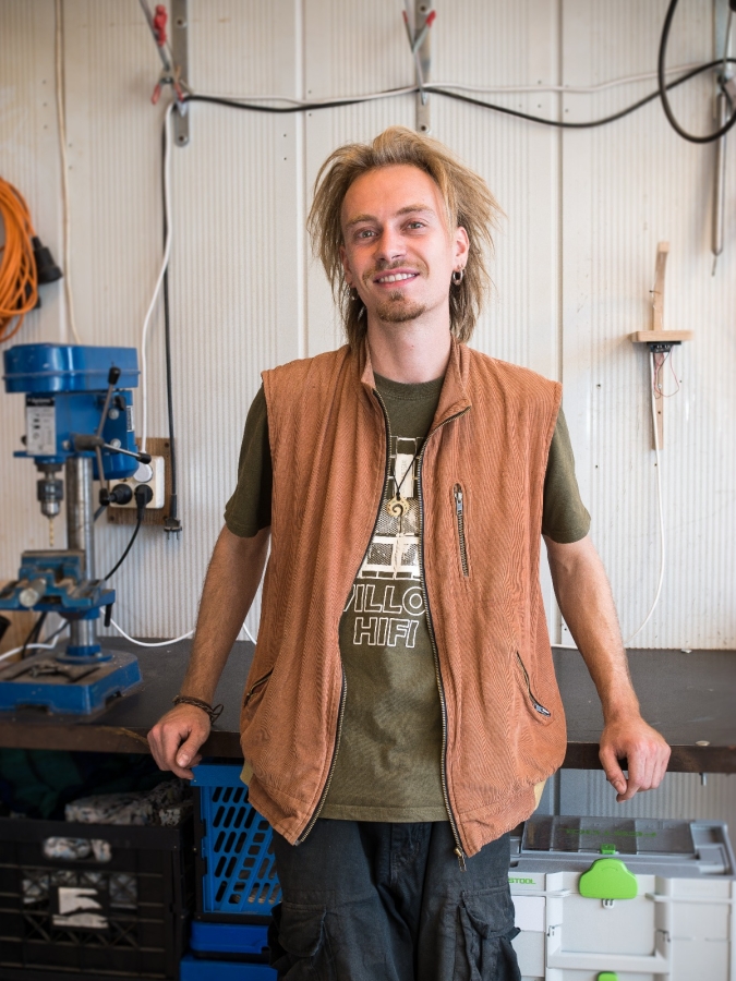 Yip Stals (NL, 2002) laat zich inspireren door tradities als parades, carnaval en andere volksrituelen. Die uitbundigheid en speelsheid vertaalt hij naar sculpturen en installaties waarin beweging, ritme en mechaniek samenkomen. Zijn werk bestaat uit kinetische sculpturen en installaties, opgebouwd uit wielen, metalen constructies en gevonden materialen. Deze elementen brengt hij samen tot hybride objecten: deels machine, deels decorstuk. Door onderdelen te laten draaien, kantelen of verschuiven ontstaan sculpturen die reageren op hun omgeving of op de beweging van de toeschouwer.