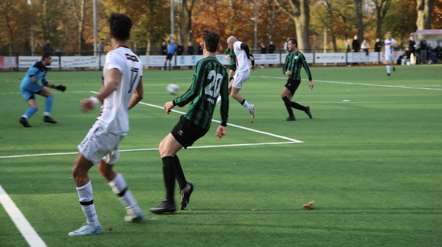 In de 28e minuut scoorde Floyd Mulder van Quick op aangeven van Ajay Tahalele een glaszuiver doelpunt (0 - 1). Op advies van de assistent keurde de scheidsrechter het doelpunt af. (Foto: Alexander Remkes).