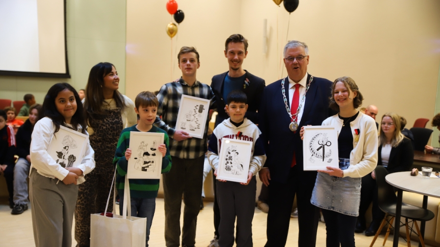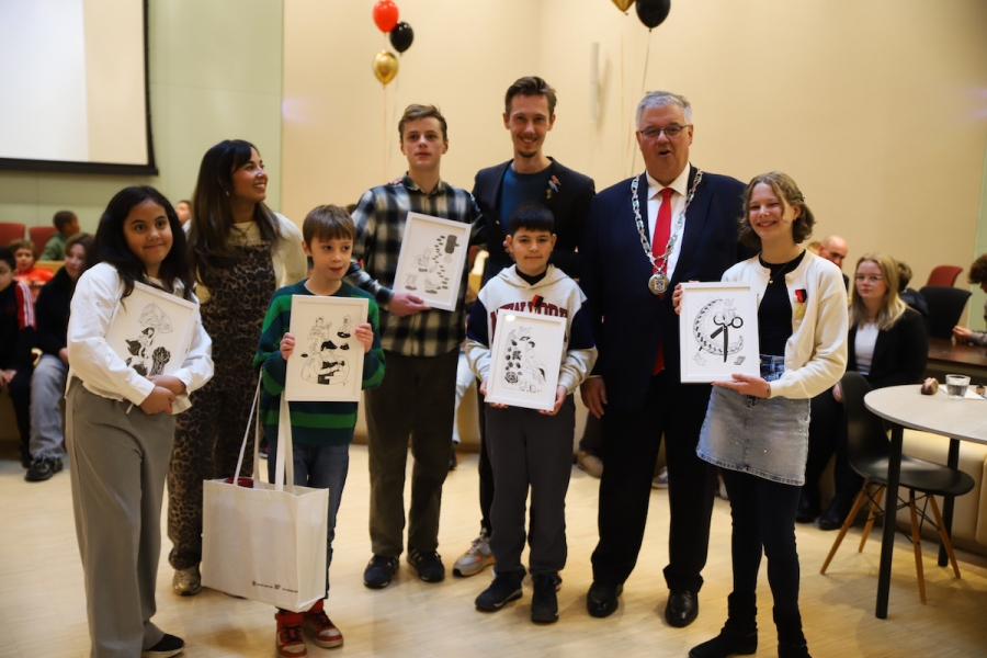 De feestelijke uitreiking werd gepresenteerd door presentatrice Nienke van Dijk en stadstekenaar Jelko Arts maakte tekeningen voor de trotse kinderen.