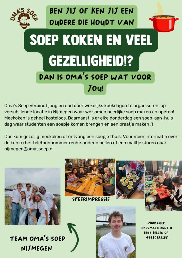 Je mag gewoon binnenlopen, of meld je aan via een berichtje via nijmegen@omassoep.nl