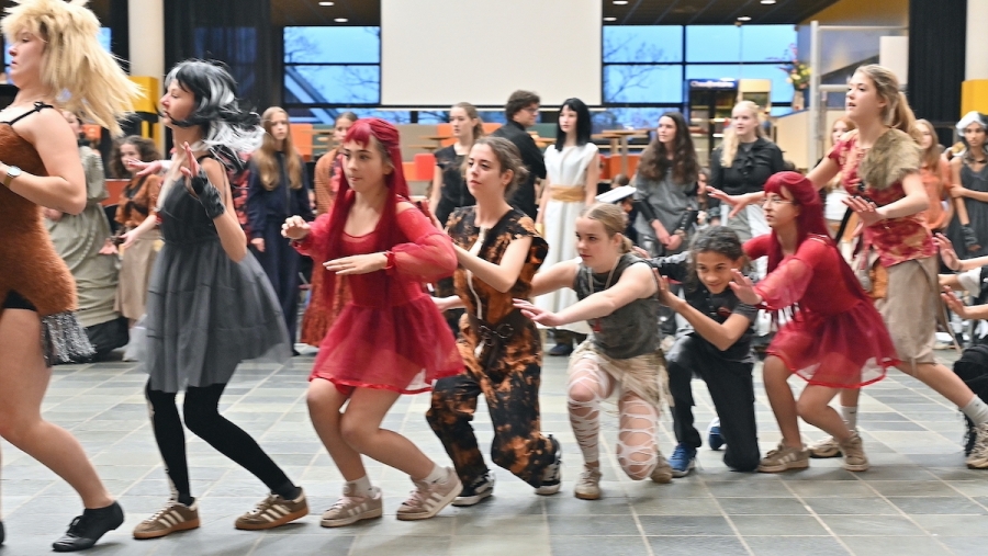 Het repetitieproces startte anderhalf jaar geleden. Leerlingen konden zich aanmelden voor tien disciplines: spel, dans, orkest, ensemble, decor, kostuum, kap en grime, fotografie, productie en de nieuwe discipline catering. Die brede mix zorgt voor een kleurrijke groep waarin leeftijden en talenten door elkaar lopen.