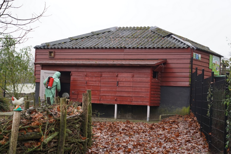 Alle dieren met vogels en veren zijn geruimd. Naast de 52 kippen gaat het dan ook om ganzen, kalkoenen en siervogels zoals pauwen. Totaal gaat het om zo'n honderd vogels. De kinderboerderij wordt gereinigd en geruimd. Hiervoor is de kinderboerderij de komende tijd gesloten.