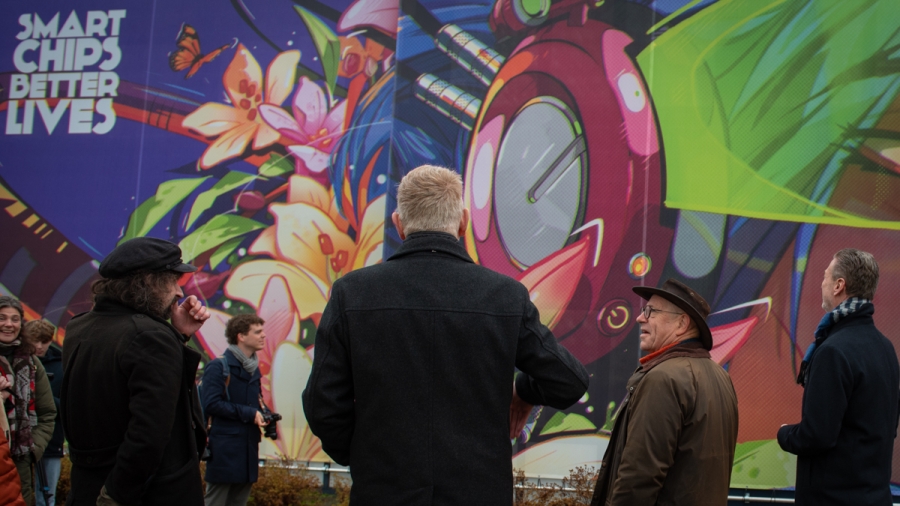 Op woensdag 3 december onthulde wethouder John Brom de muurschildering bij NXP Semiconductors aan de Gerstweg 2. Om het bruisende karakter van de Noviotech Campus aan de buitenkant beter zichtbaar te maken heeft de gemeente Nijmegen dit in samenwerking met NXP geïnitieerd.
