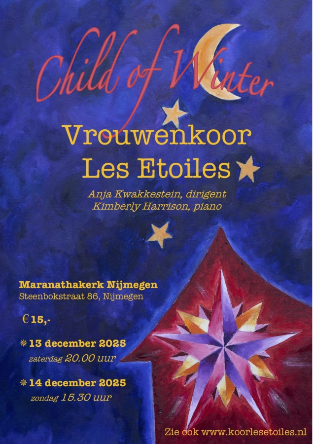 Die verscheidenheid laat Vrouwenkoor Les Etoiles horen in het kerstconcert Child of Winter. De baby in de kribbe leidt tot wiegeliedjes zoals het lieflijke Sleep, Child of Winter van Karl Jenkins. Maar ook tot het krachtige, bijna boos klinkende This Little Babe. Het contrast is enorm! Want die kleine, tere Jezus is geboren om als strijder voor God de duivel te verslaan. Dit is een tekst uit 1595 waar Benjamin Britten in 1942 muziek bij componeerde.