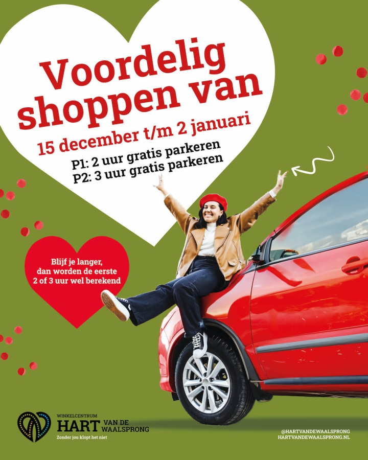Lent – Shoppen voor de feestdagen? In het bruisende Winkelcentrum Hart van de Waalsprong vind je hiervoor alles binnen handbereik. En van 15 december t/m 2 januari is het ook nog eens voordelig parkeren.