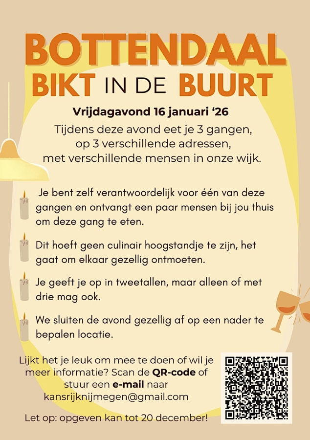 Op 20 december 2025 is de láátste kans om je op te geven voor Bottendaal Bikt in de Buurt.