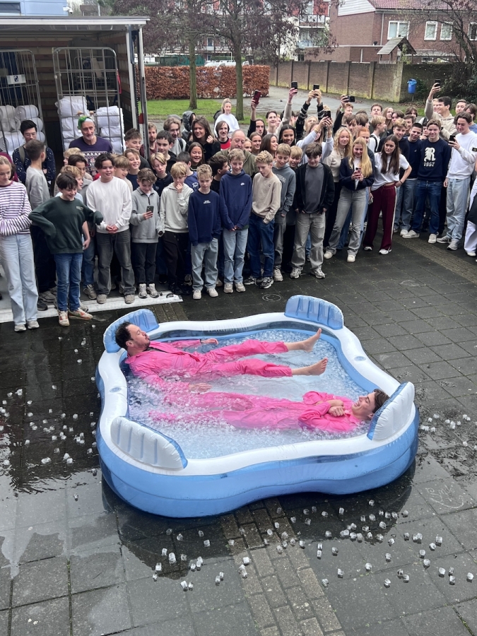 Op vrijdagochtend 19 december was de kerstactie van leerlingen van het Canisius College, genaamd: Canisius Challenges! Er waren (zelfverzonnen) challenges zoals spijkerbroek hangen, in een ijsbad gaan en darten tegen een docent.
