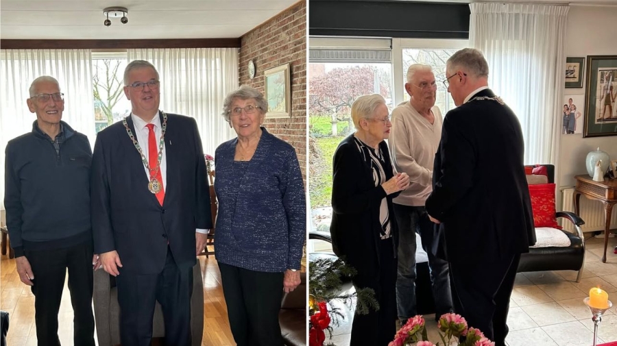 Burgemeester Bruls is op bezoek geweest bij niet één maar twee echtparen die in de kerstvakantie hun briljanten jubileum vieren.