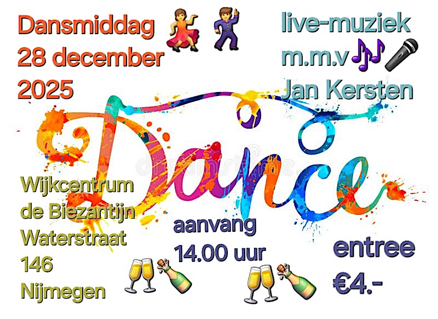Kom dan zondag 28 december 2025 naar Wijkcentrum de Biezantijn Waterstraat 146 in Nijmegen: