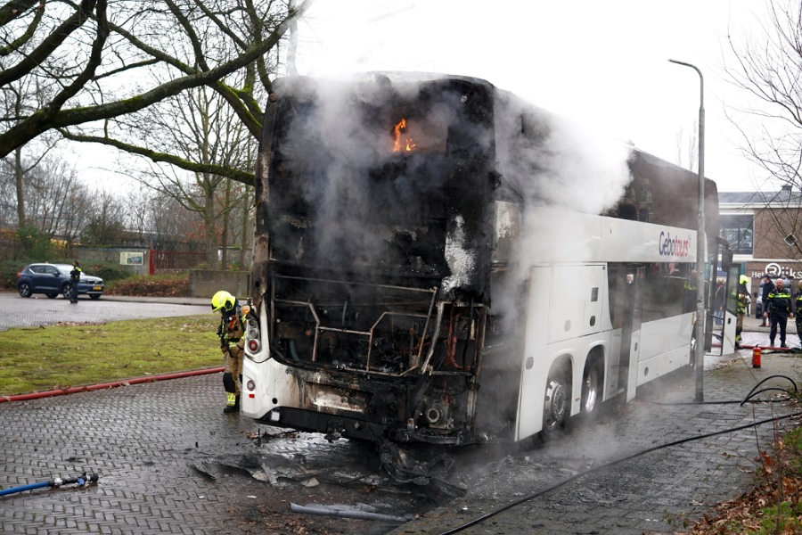 Vanmiddag is omstreeks 12.00 uur een tourbus aan de Goffertweg in Nijmegen in brand gevlogen. De passagiers waren op tijd de bus uit.