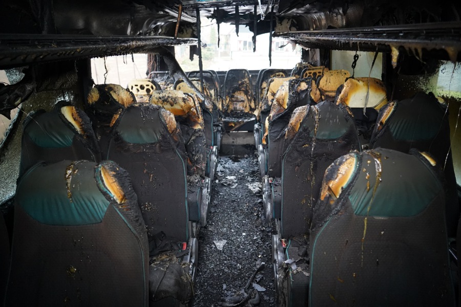 Binnen korte tijd sloegen metershoge vlammen uit de achterzijde van de bus. De brandweer was snel ter plaatse en bluste de brand. Hiervoor moesten enkele luiken opengebroken worden. Uit het laadruim werden de rolstoelen en kinderzitjes gehaald. De ouders regelen de schade hieraan zelf met de verzekeraars van de busmaatschappij.