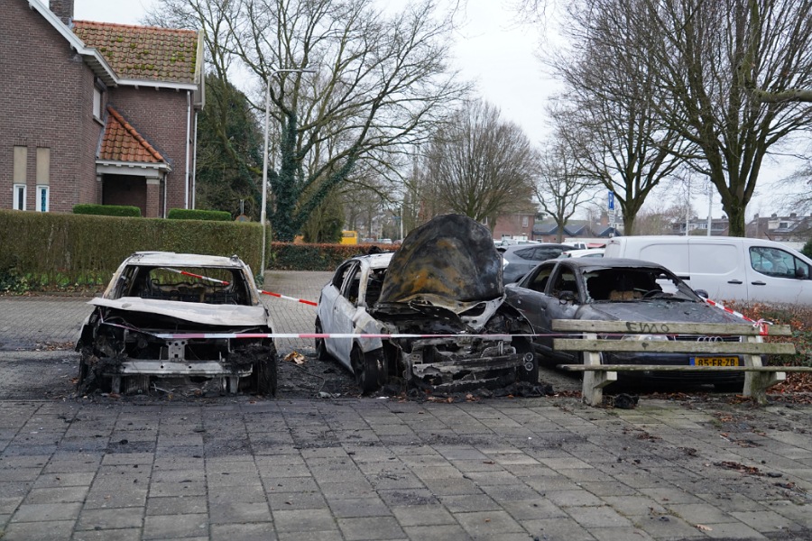 Omwonenden werden wakker van de brand in twee geparkeerde auto's. De vlammen sloegen uit de voertuigen. Al snel sloeg de brand over naar een derde voertuig. De brandweer bluste de brand, maar de auto's waren niet meer te redden. De politie heeft de auto's afgezet met lint.