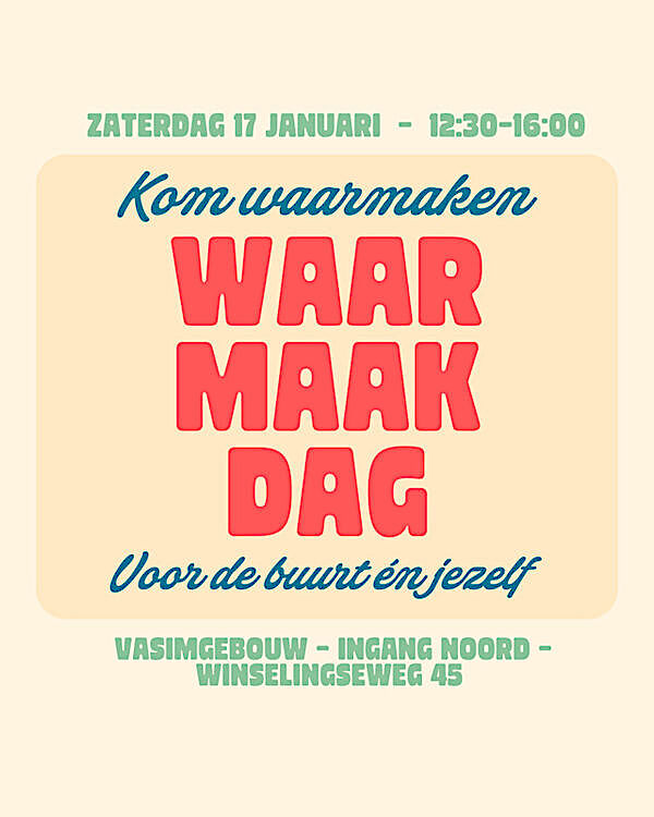 Het event is speciaal voor ideeën rondom je buurt, maar ook als je iets voor jezelf wil ondernemen ben je van harte welkom. Want samen Waarmaken is aanstekelijk.