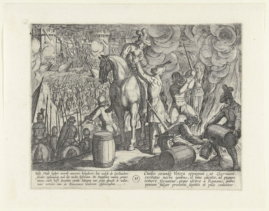 Illustratie: Bataafse opstand, nachtelijke aanval op een Romeinse vesting, 69–70 n.Chr.