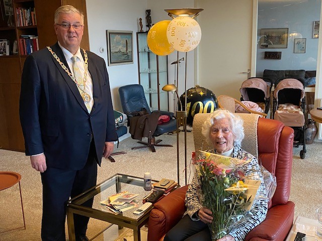 Afgelopen zondag is mevrouw Aberson-Smits 100 jaar geworden. Burgemeester Bruls kwam haar hiermee persoonlijk feliciteren.
