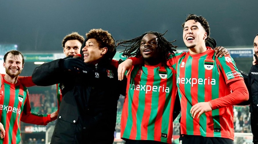 Zo gaat de Nijmeegse driekleur aankomende vrijdag in de koker als er wordt geloot in het programma De Voetbalkantine op ESPN. Lang hoeven de N.E.C.’ers het niet zonder hun club te doen. Zaterdag komt de ploeg van Schreuder alweer in actie. Om 16.30 uur komt Heracles Almelo op bezoek in het Goffertstadion.