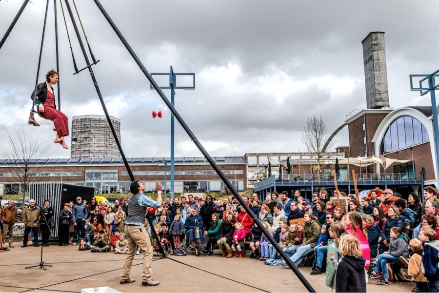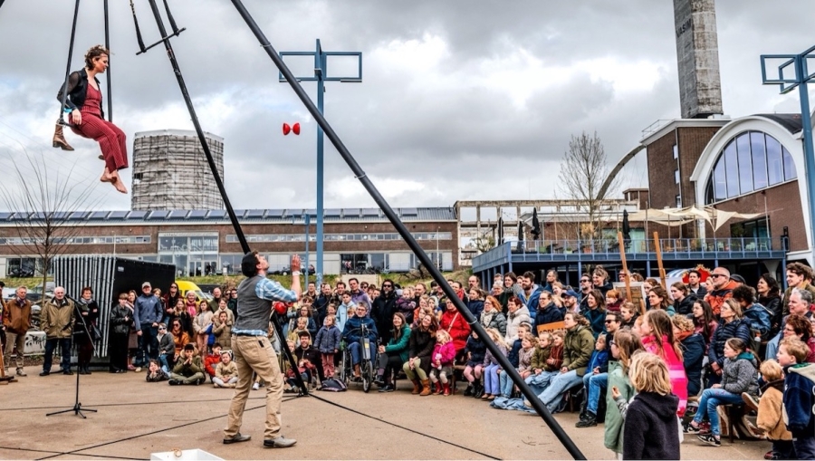 Tussen 12.00 en 17.30 uur kunnen bezoekers vrij rondlopen langs korte voorstellingen, interactieve installaties en acts waar je soms ook zelf onderdeel van wordt. Nieuwe verhalen ontstaan hier ter plekke, op een industriële locatie waar binnen en buiten in elkaar overlopen. Geen standaard rode theaterstoelen, wel nieuwsgierigheid en ruimte om te proberen.