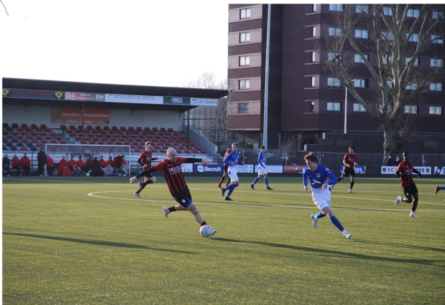Foto: Actie van Floyd Mulder tijdens de bekerwedstrijd Quick Zo 1 - Helios 1 op 14 februari 2026. Fotograaf: Alexander Remkes.