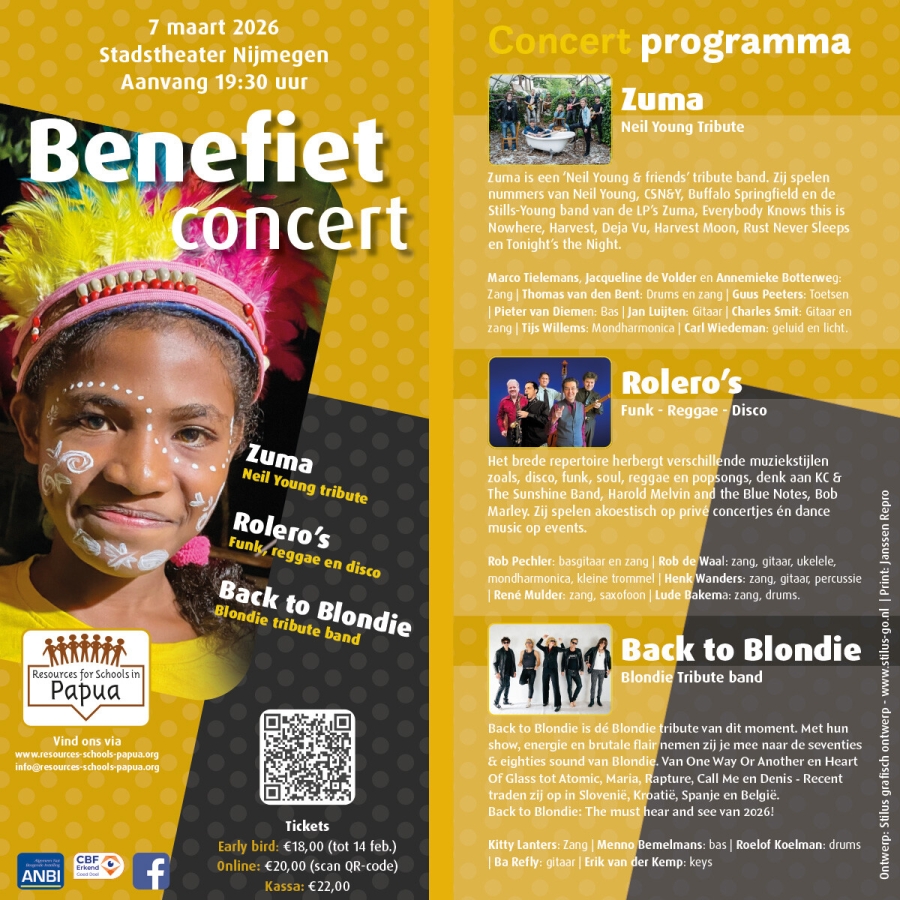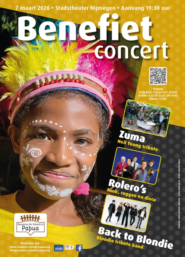 Op West Papua ontbreekt er aan het onderwijs werkelijk aan alles. Veel dorpen hebben geen scholen, geen onderwijsmiddelen en vaak geen leraar. Daarom organiseert de stichting RSP (Resources for schools op Papua) een benefietconcert op zaterdag 7 maart in het Stadstheater van Nijmegen. De opbrengst komt volledig ten goede aan de scholen.