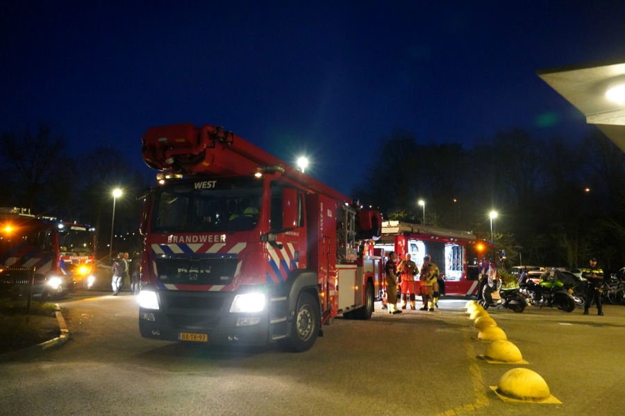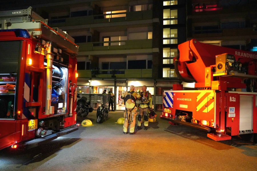 De rook kwam uit een appartement op de 4e verdieping van een flatgebouw. Meerdere brandweerwagens, politiewagens en een ambulance snelden zich naar de locatie. Meerdere omwonenden hadden inmiddels de bewoner wakker gekregen en uit zijn appartement gehaald.