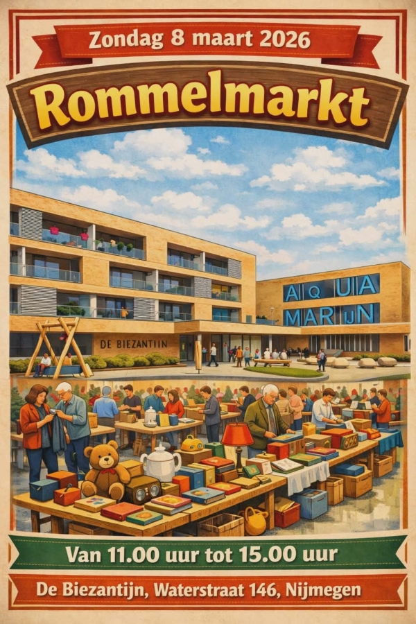 Zondag 8 maart 2026 is er een gezellige rommelmarkt in.Wijkcentrum de Biezantijn