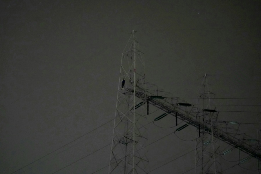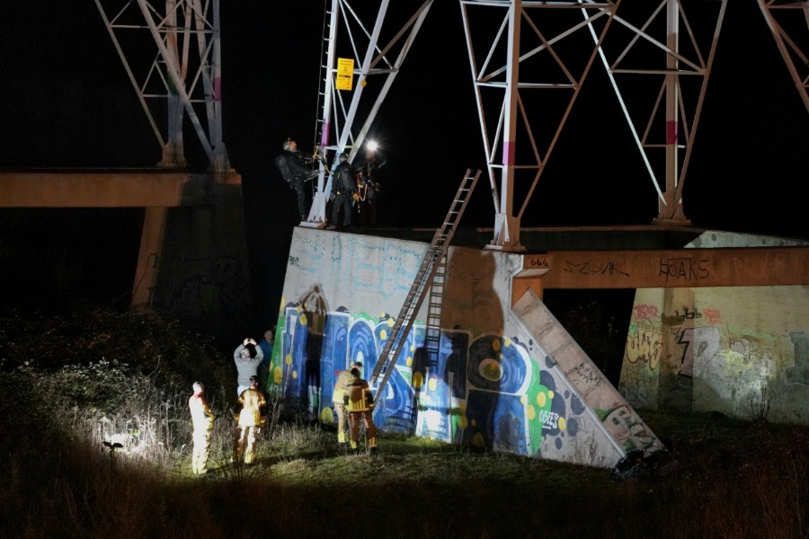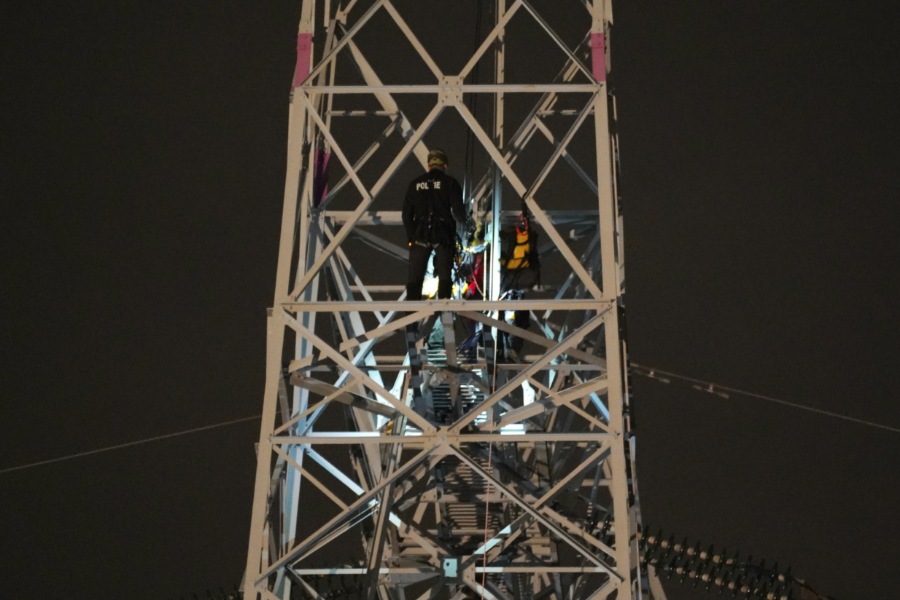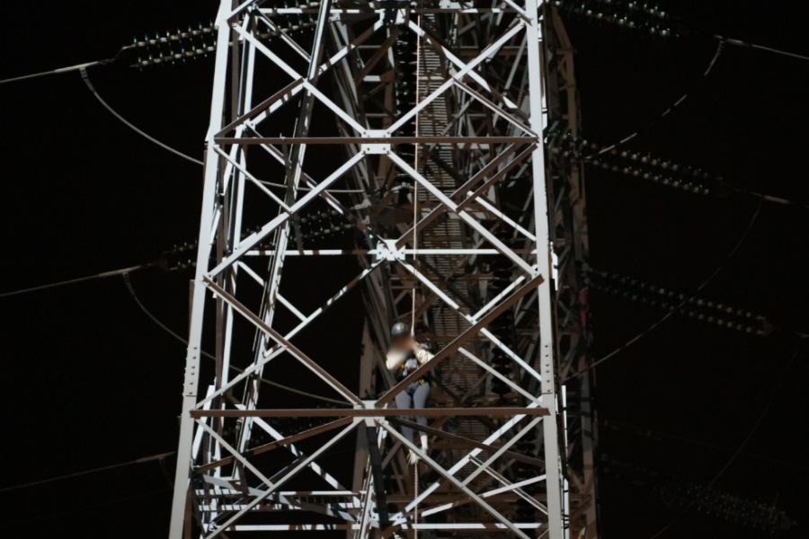Bij aankomst hoorden agenten een vrouw om hulp roepen. Ze zat helemaal bovenin de tientallen meters hoge hoogspanningsmast. Ook de brandweer werd ingezet, onder andere met een reddingskussen en een hoogwerker. De hoogwerker kwam echter niet hoog genoeg.