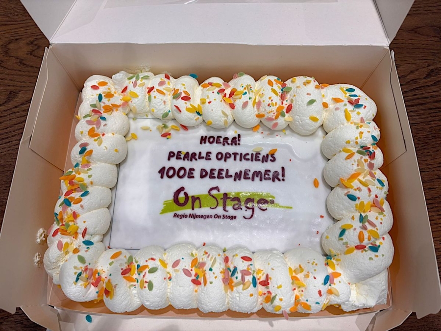 De organisatie van regio Nijmegen On Stage is blij met de deelname. “Het is geweldig dat we inmiddels 100 bedrijven hebben die hun deuren openen voor vmbo-leerlingen uit de regio”, aldus projectleider Monique Vermeulen. “We zijn heel blij dat Pearle Opticiens opnieuw meedoet met locaties uit onze regio. Het team reageerde enthousiast en heeft genoten van de feestelijke taart.”