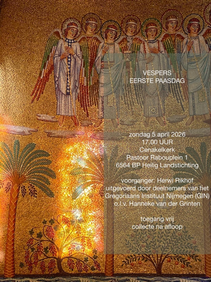 Op elke eerste zondag van de maand worden in de Cenakelkerk in de Heilige Landstichting Gregoriaanse vespers gezongen. De vespers vormen het middaggebed van de getijden en bieden een half uur van bezinning en verstilling.