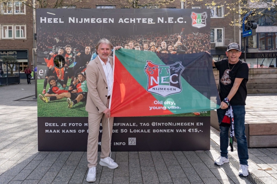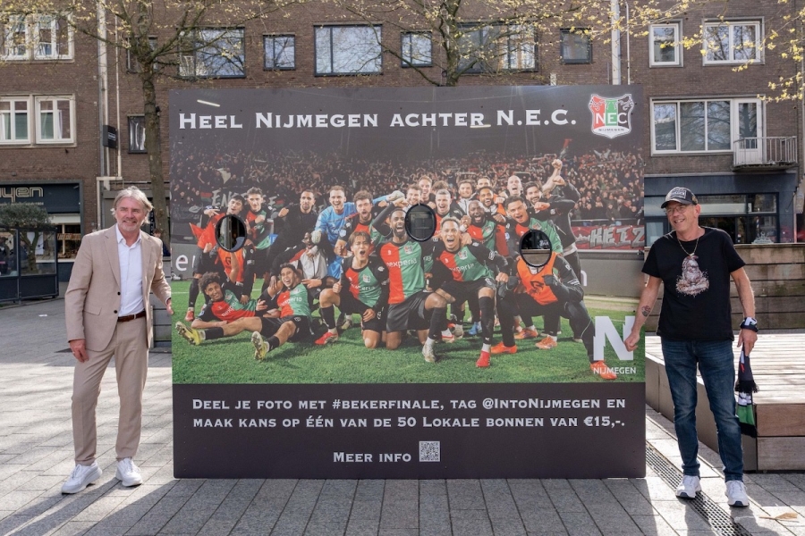 Om de bezoeker van de binnenstad mee te nemen in de aanloopperiode rondom de bekerfinale op 19 april heeft Huis voor de Binnenstad een NEC-fotobord ontwikkeld.