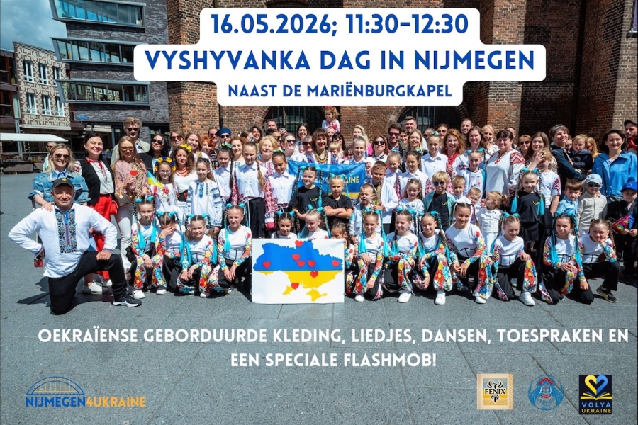 Nijmegen4Ukraine organiseert voor de vierde keer de Oekraïense Vyshyvanka dag op 16 mei vanaf 11:30 uur in Nijmegen. De zangers van het Vedana-koor en het Fenix-ensemble bereiden nieuwe liedjes voor en Oekraïense kinderen presenteren nieuwe danshits met een speciale flashmob!