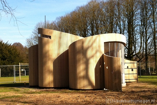 Alle 12 bijenvolken van de Imkervereniging Nijmegen en Omstreken zijn verhuisd naar de nieuwe stal. De bijenstal staat op de plek in het park waar imkers al 75 jaar actief zijn. Het ontwerp van de nieuwbouw is gebaseerd op de zonnewende en geïnspireerd op de vorm van de bij. De architect is Frank Marcus, die ook actief is als fruitboer en imker.