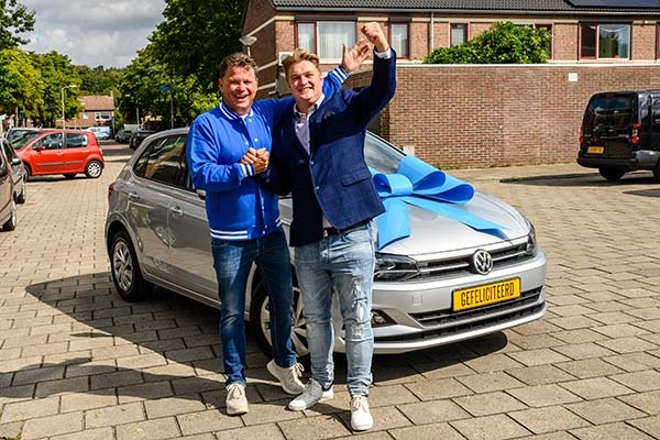 De 26-jarige Joey werd tijdens een optreden van ‘De gebroeders Knipping’, een zangduo dat hij met zijn broer Jean vormt, verrast door VriendenLoterij-ambassadeur Wolter Kroes met een gloednieuwe auto. Joey reageerde blij: ‘We verwachten binnenkort ons eerste kindje. We hadden een nieuwe auto nodig, dus deze prijs komt precies op het juiste moment!’