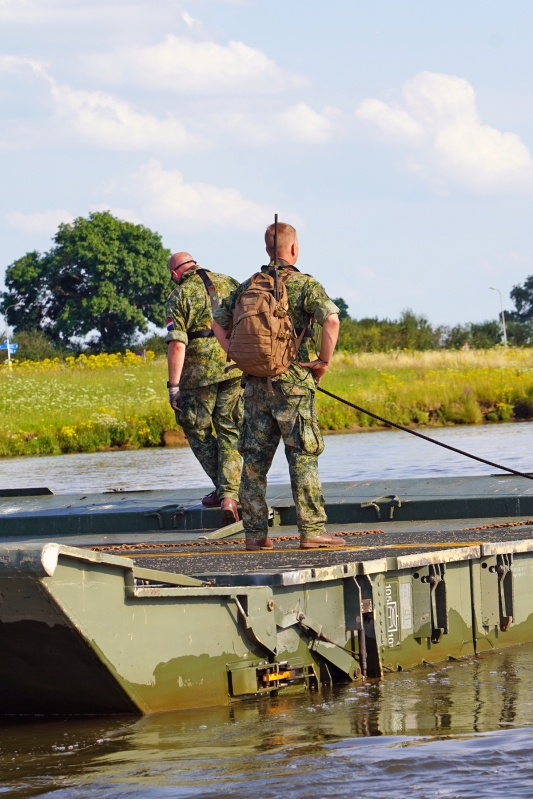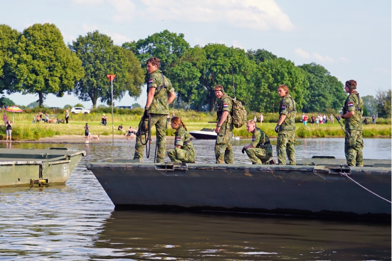 Rond zes uur werd het eerste deel van de brug aan de zijde van Mook gelegd. Militairen van 105 Geniecompagnie waterbouw legden de brug, tijdens de laatste Vierdaagsedag dé verbinding tussen Limburg en Brabant, binnen 20 minuten vast. Aan beide kanten van de Maas stonden tientallen belangstellenden om de proeflegging van de brug te zien. Eerder vandaag werd bekend dat de routes aangepast zijn voor morgen, wat betekend dat een deel van de lopers voor het eerst niet over de brug zullen lopen.