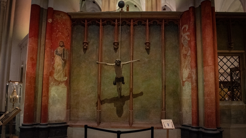 Hubert Hendriks en Charles van Doornewaard hebben daar de afgelopen jaren intensief op gestudeerd en hard aan gewerkt. Het is een bijzondere belevenis geworden in de kooromgang en op het hoogkoor van de Stevenskerk. Digitale afbeeldingen gaan samen met korte films die met koptelefoons zijn te beluisteren. De drieluikkapel heeft een gotisch interieur gekregen. Beelden, objecten, liturgisch vaatwerk, boeken en vaandels. Een middeleeuwse processie en het Nijmeegs Schippers Antependium. Uiteraard zijn de akte van 1591 en een beeltenis van Stefanus aanwezig inclusief een replica van zijn reliekarm. De expositie duurt nog tot en met 11 januari 2026.