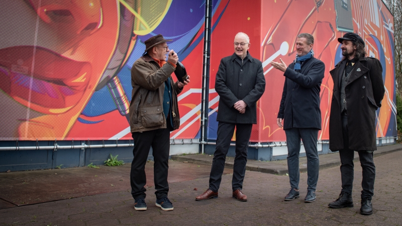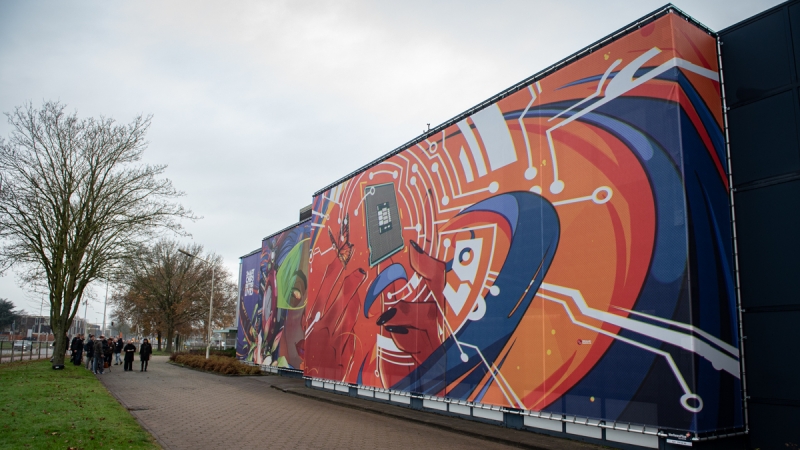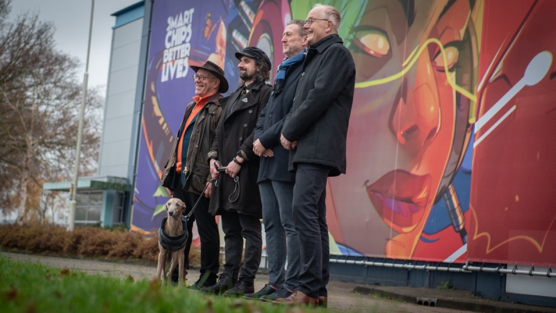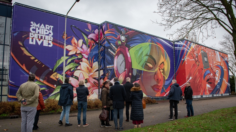 Op woensdag 3 december onthulde wethouder John Brom de muurschildering bij NXP Semiconductors aan de Gerstweg 2. Om het bruisende karakter van de Noviotech Campus aan de buitenkant beter zichtbaar te maken heeft de gemeente Nijmegen dit in samenwerking met NXP geïnitieerd.