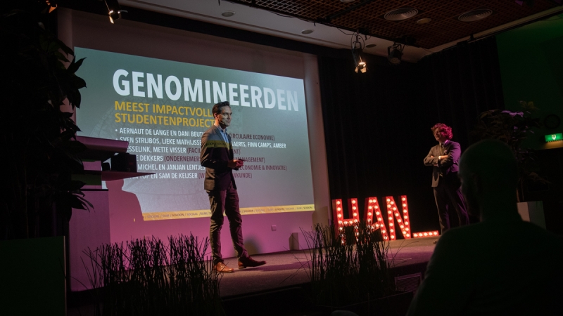 Op woensdag 14 januari reikte wethouder Tobias van Elferen een prijs uit tijdens de HAN Green Awards bij Hogeschool Arnhem Nijmegen aan de Kapittelweg. Dit jaarlijkse evenement eert studenten, docenten en medewerkers die zich met passie inzetten voor duurzame transities binnen en buiten de HAN.