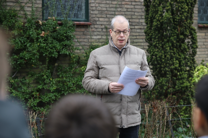 Daarna deden enkele leerlingen van Aquamarijn een voordracht over hun gedachten bij deze gebeurtenis. Ook zij hielden een minuut stilte en legden bloemen bij de plaquette.