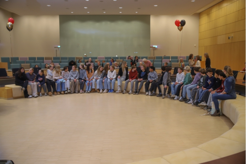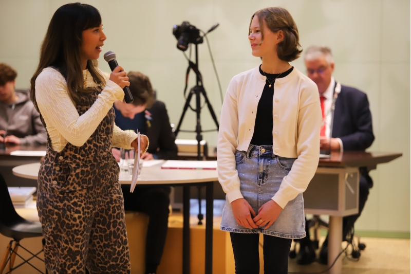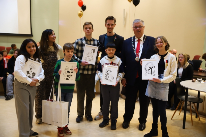 De feestelijke uitreiking werd gepresenteerd door presentatrice Nienke van Dijk en stadstekenaar Jelko Arts maakte tekeningen voor de trotse kinderen.