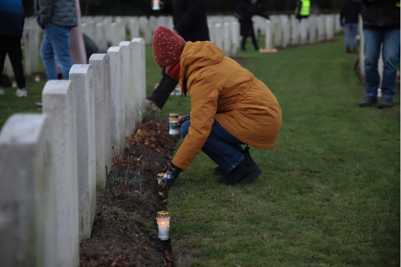 Tachtig jaar geleden gaven de 1643 jongemannen in een voor hen vreemd land hier hun leven voor onze vrijheid. Voor hen geen licht meer, alleen nog maar herinnering. Een herinnering die door al die lichtjes levend wordt gehouden en niet mag doven, zoals op de Stone of Remembrance wordt verwoord: ‘Their names liveth for evermore'.