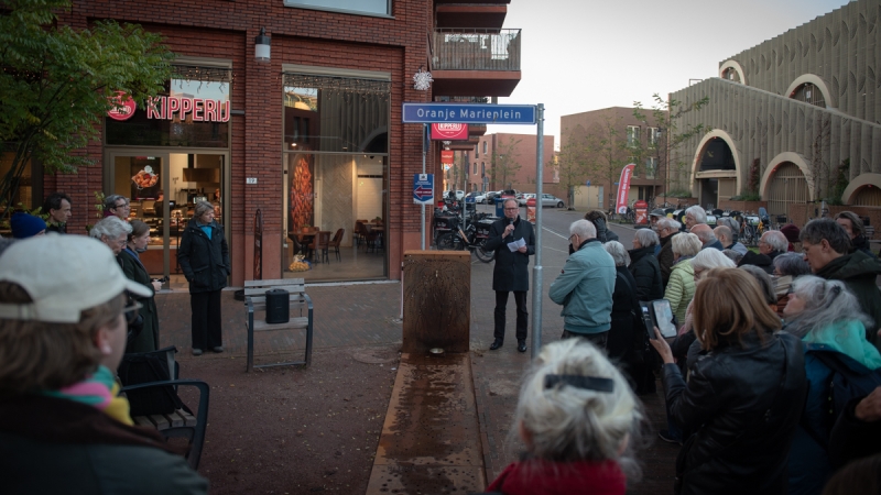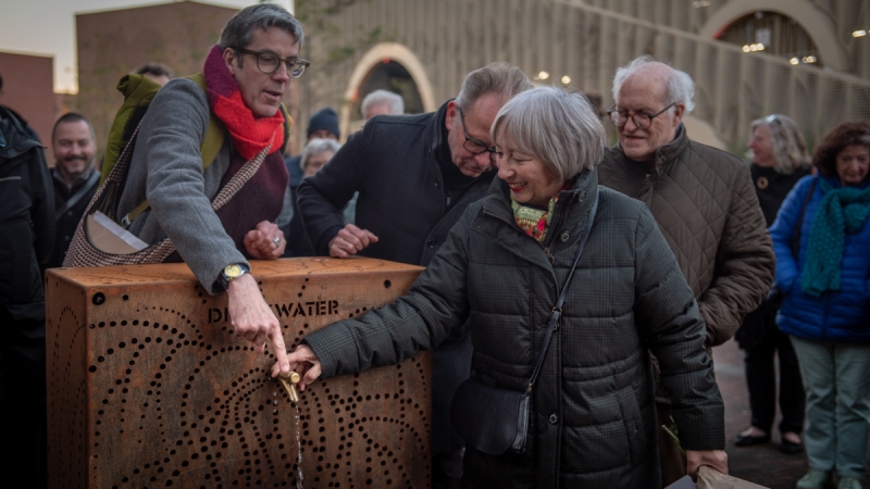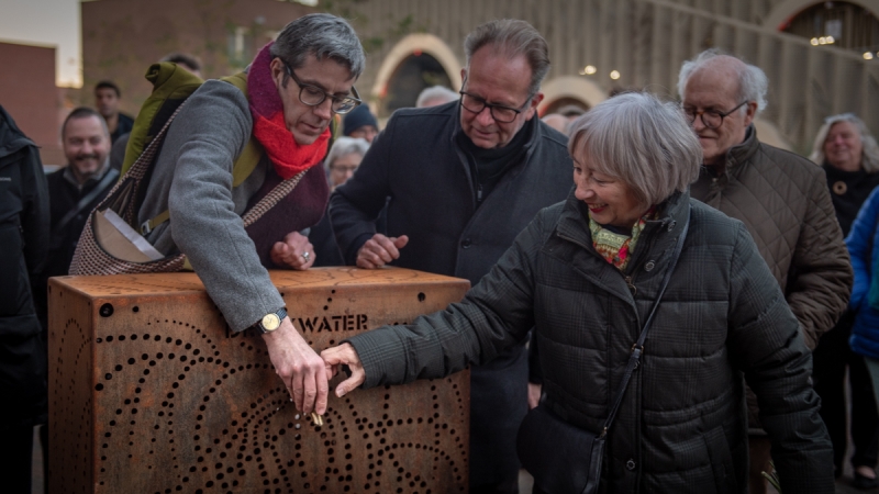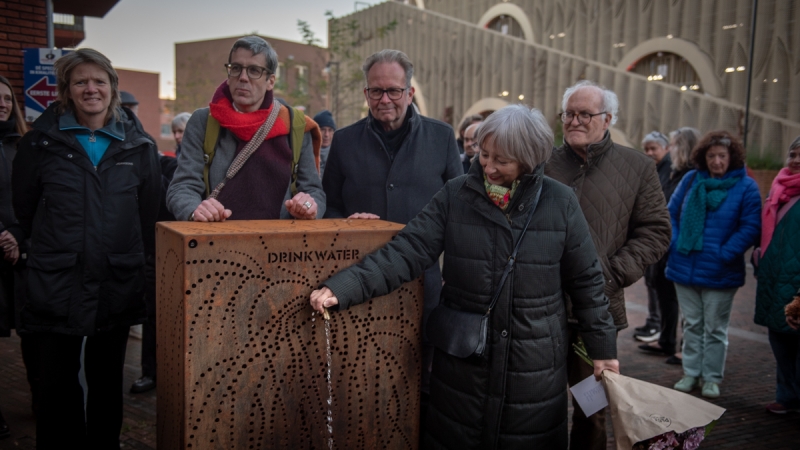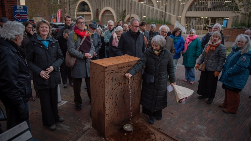Op vrijdag 21 november was wethouder Noël Vergunst aanwezig bij de opening van het nieuwe waterkunstwerk Hof van Holland. De kunstenares, Isolde Venrooij, is begin dit jaar op 47-jarige leeftijd overleden. Haar kunstwerk, 'de Spons', compleet met watertappunt, was al klaar en kon dus toch worden geplaatst.