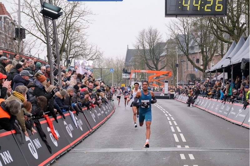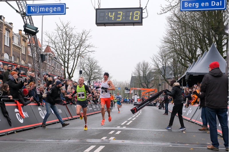 Bij de mannen ontstond al snel een kopgroep met daarin ook Mike Foppen en NN Running Team atleet Richard Douma. De groep van ruim tien atleten bleef bij elkaar tot de Zevenheuvelenweg. Hier zette Rogers Kibet aan en kwam solo aan de leiding. Beide Nederlanders moesten vanaf halverwege steeds meer tijd toegeven op de 19-jarige Oegandees. Kibet denderde alleen door en kwam na 42:08 winnend over de finish. Tweede werd Nibret Melak (42:43) en derde werd NN Running Team atleet Abel Sikowo (42:58). Douma (43:18) en Foppen (43:21) volgenden als zevende en achtste, waarbij NN Running Team atleet Douma het Nederlands record op vijf seconden mistte. Khalid Choukoud eindigde als derde Nederlander in 43:25.