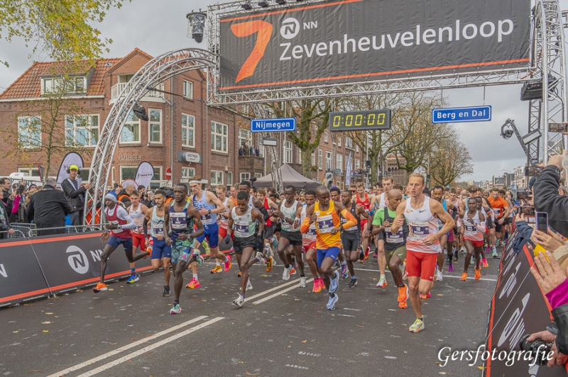 Kiplimo stond vol vertrouwen aan de start. Hij gaf aan niet per se voor een wereldrecord te gaan, maar keek uit naar de Nijmeegse heuvels. De eerste kilometers bleef de top nog relatief dicht bij elkaar. Na 6 kilometer wist Kiplimo het eerste gat te slaan. De winnaar van vorig jaar, Rogers Kibet, moest afhaken en kwam uiteindelijk als nummer 2 over de finish in 42.43.